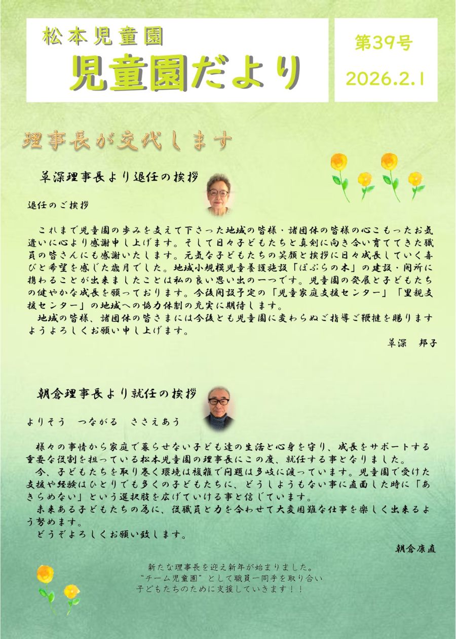 児童園だより第39号を掲載しました